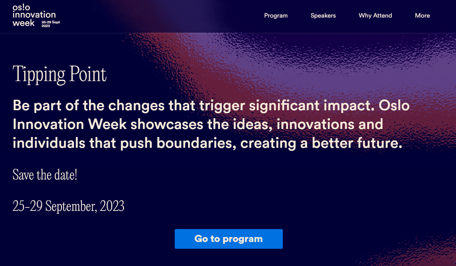 Be part of the changes that trigger significant impact. Oslo Innovation Week showcases the ideas, innovations and individuals that push boundaries, creating a better future.