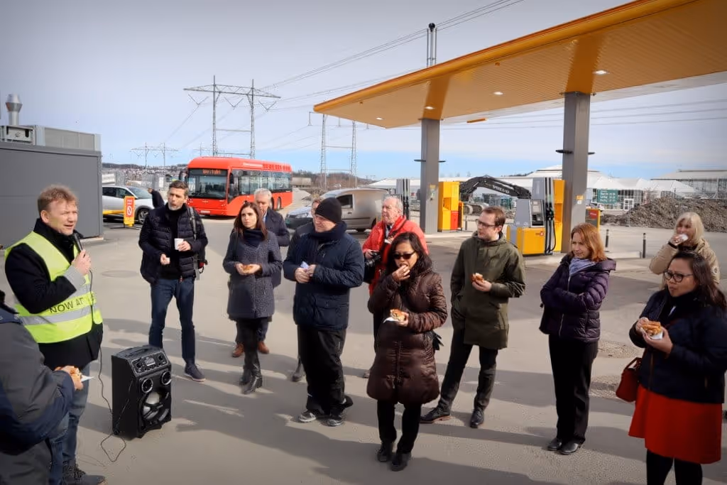 Then the journey to Uno-X continued its hydrogen station at Hvam. Managing Director Uno-X Hydrogen, Roger Hertzenberg, gave the participants a presentation of the station and oriented use of hydrogen as a fuel in the transport sector.
