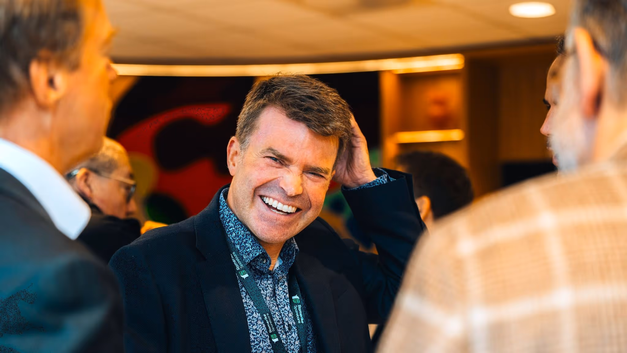 Banksjef for forretningsutvikling og teknologi, Martin Fagerli, var også stolt over å kunne invitere kunder og samarbeidspartnere til Romerike Sparebanks nye storstue. Foto: Lillian Ussberg