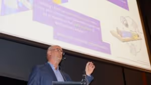 Forskningsdirektør Christian Dye hos IFE Energi avrundet det faglige programmet. Han fortalte om banebrytende forskning inne radiofarmasi og hvordan nye radioaktive atomer er blitt en døråpner for nye radioaktive medisiner.