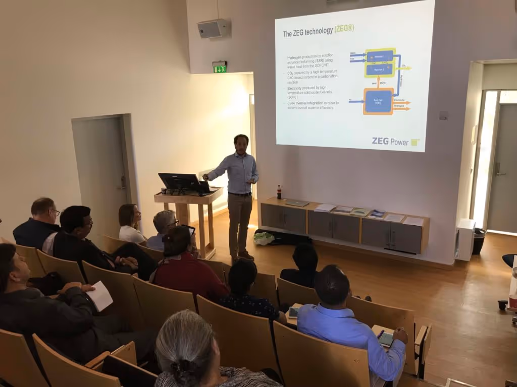 Kathrine Ryengen, CEO, and Nicola Di Giulio, PhD – Chief Engineer, presented ZEG Power, who’s mission is to empower the world with green energy. The ZEG® Technology is used for high efficient production of electricity and/or hydrogen from hydrocarbon gases with integrated CO2-capture at acceptable cost. After the presentation, the group visited the ZEG demo site at Akershus Energy Park.