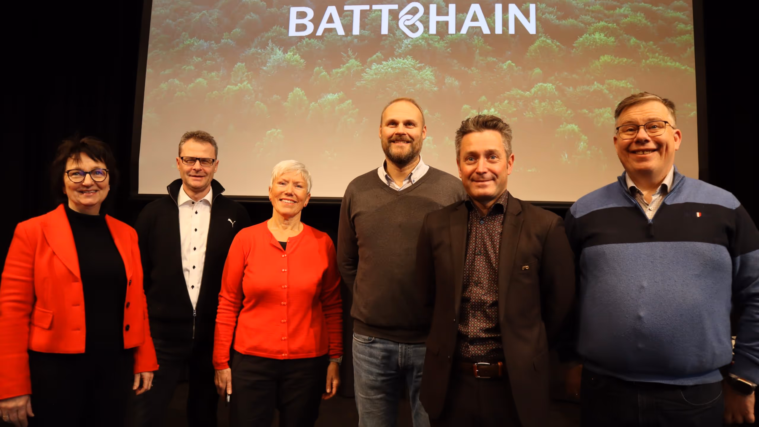 Battchain-ledelsen, her representert ved Inger-Lise M. Nøstvik, Jon Eriksen og Marit Heiberg fra Kunnskapsbyen, Inge Michael Bilet fra Smart Innovation Norway og Ole B. Hoen og Lars Lyshaug fra Kongsberg Technology Cluster, ønsker deltakerne velkommen til batteriprosjektet.