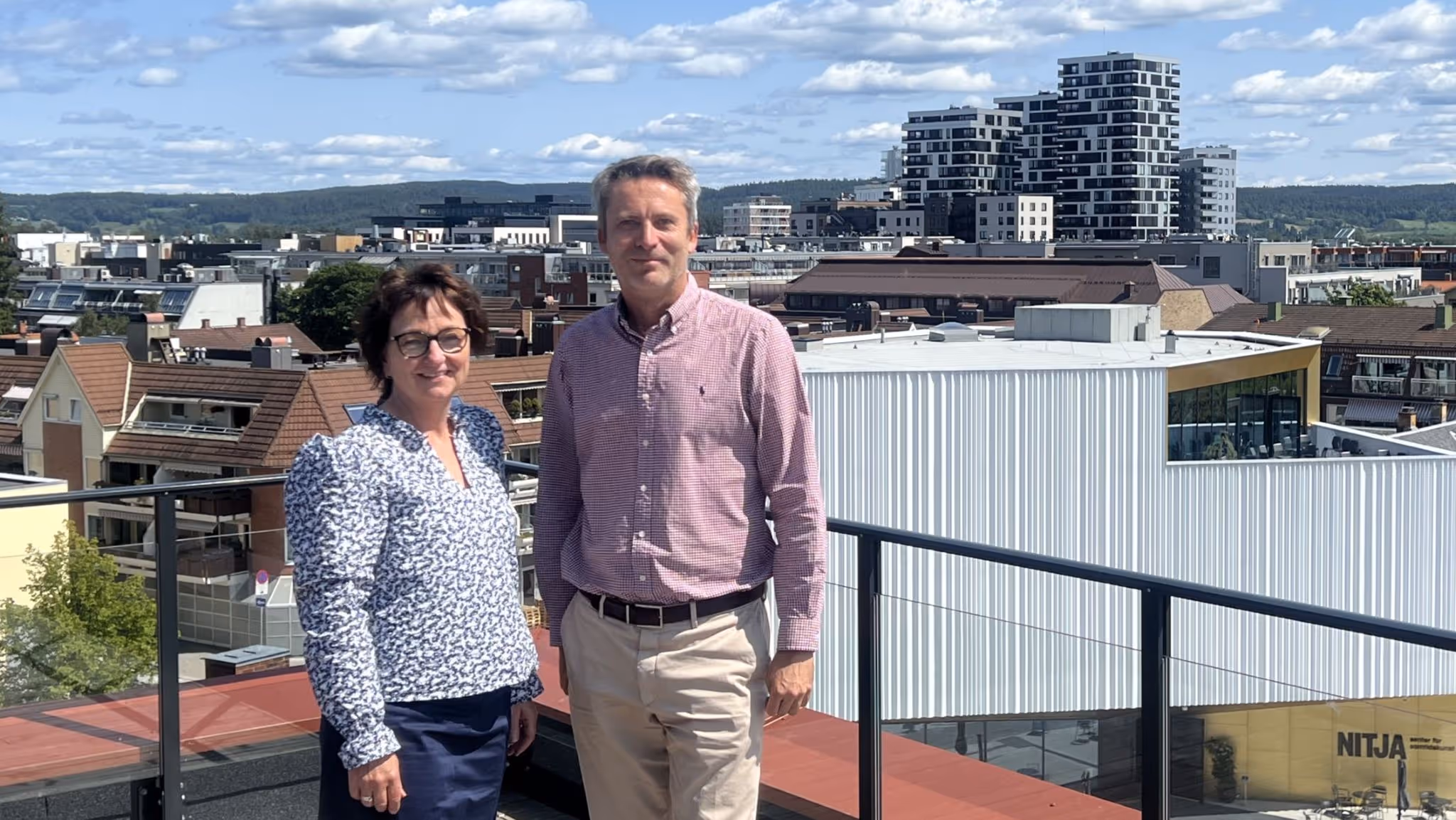 Kunnskapsbyens Inger-Lise M. Nøstvik og Daniel Ras-Vidal i Kjeller Innovasjon innleder et tettere samarbeid om forretningsutvikling og internasjonalisering.